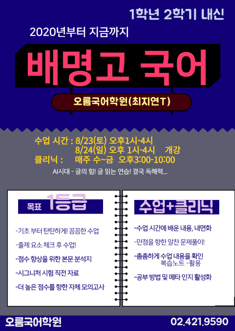 2Çб⠽ÃÇè ¹üÀ§ 1-1´Ü¿ø ¿¾ ³ë·¡ °¨»óÇϱâ - <Á¦¸Á¸Å°¡>, <¼Ó¹ÌÀΰî> 1-2´Ü¿ø °íÀü ¼Ò¼³ °¨»óÇϱâ - <ÃáÇâÀü> 2-1´Ü¿ø ³íÁõÇÏ´Â ±Û ¾²±â 3-2´Ü¿ø ÇÑ±Û ¸ÂÃã¹ý°ú ¿À´Ã³¯ÀÇ ±¹¾î »ýȰ 2025³â 1Çгâ 1Çбâ ÃÖÁ¾ Àü±³ 1µî, Àü±³ 3µî ¹èÃâ 1µî±Þ 8¸í Ãâó ÀÔ·Â ÇлýµéÀÌ ±¹¾î¸¦ ÁÁ¾ÆÇÏ°í ±¹¾î °øºÎ ¹æ¹ýÀ» Å͵æÇϸç, ½º½º·Î 3Çгâ±îÁö Á¡Á¡ ÀڽۨÀÌ »ý±æ ¼ö ÀÖµµ·Ï ÃÖ¼±À» ´ÙÇØ µ½°Ú½À´Ï´Ù. 2020³âºÎÅÍ Áö±Ý±îÁö ¹è¸í°í ±¹¾î´Â Áö¿¬»ù!!! 2023³â °Ç¾ç´ë ÀÇ´ë, Á¶¼±´ë ¾à´ë ¿Ü ´Ù¼ö 2024³â ¼¿ï´ë ÀÇ´ë, ¼¿ï´ë Àι®´ë(¿¬¼¼´ë, °í·Á´ë, ¼º±Õ°ü´ë µ¿½Ã ÇÕ°Ý), ¼º±Õ°ü´ë °ÇÃà 2025³â ¼¿ï´ë ÀÚÀ¯Àü°ø, ¿µ³²´ë ÀÇ´ë, ¿¬¼¼´ë »çȸº¹Áö, °í·Á´ë °æ¿µ µî ´Ù¼ö