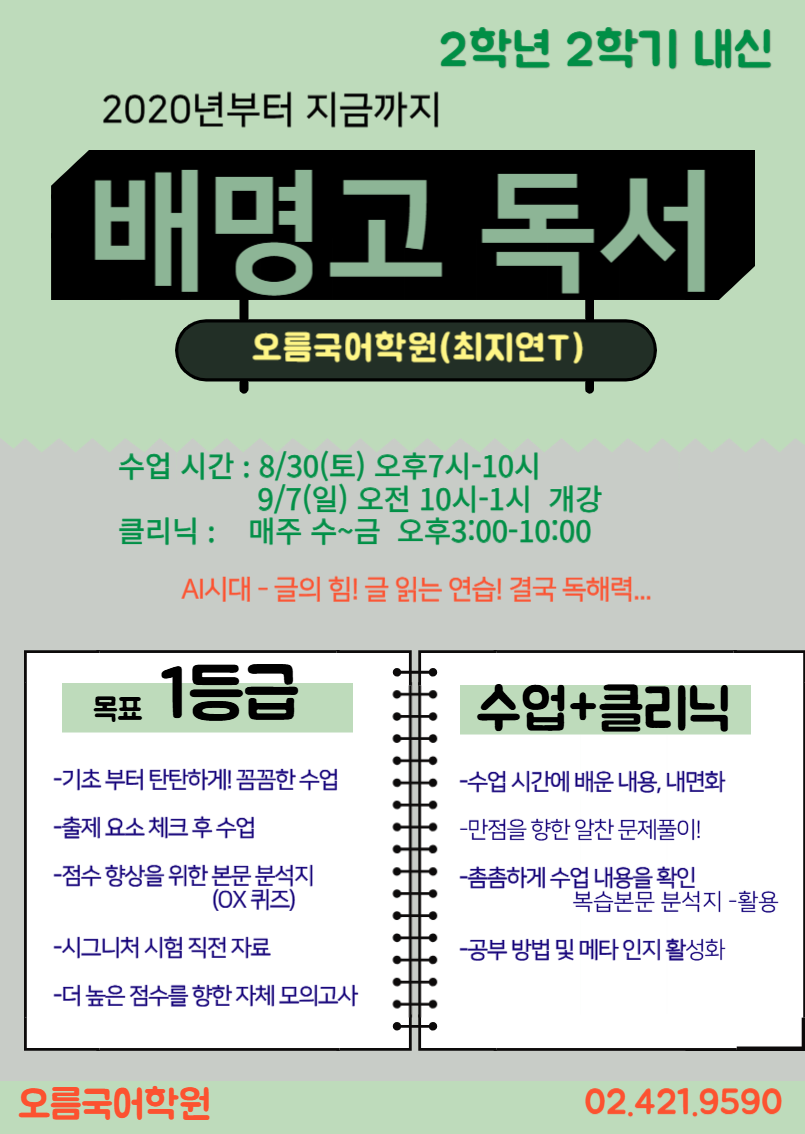ÇлýµéÀÌ ±¹¾î¸¦ ÁÁ¾ÆÇÏ°í ±¹¾î °øºÎ ¹æ¹ýÀ» Å͵æÇϸç, ½º½º·Î 3Çгâ±îÁö Á¡Á¡ ÀڽۨÀÌ »ý±æ ¼ö ÀÖµµ·Ï ÃÖ¼±À» ´ÙÇØ µ½°Ú½À´Ï´Ù. 2020³âºÎÅÍ Áö±Ý±îÁö ¹è¸í°í ±¹¾î´Â Áö¿¬»ù!!! 2023³â °Ç¾ç´ë ÀÇ´ë, Á¶¼±´ë ¾à´ë ¿Ü ´Ù¼ö 2024³â ¼¿ï´ë ÀÇ´ë, ¼¿ï´ë Àι®´ë(¿¬¼¼´ë, °í·Á´ë, ¼º±Õ°ü´ë µ¿½Ã ÇÕ°Ý), ¼º±Õ°ü´ë °ÇÃà 2025³â ¼¿ï´ë ÀÚÀ¯Àü°ø, ¿µ³²´ë ÀÇ´ë, ¿¬¼¼´ë »çȸº¹Áö, °í·Á´ë °æ¿µ µî ´Ù¼ö 3Çгâ 1Çб⠳»½Å±îÁö ÇÔ²²...