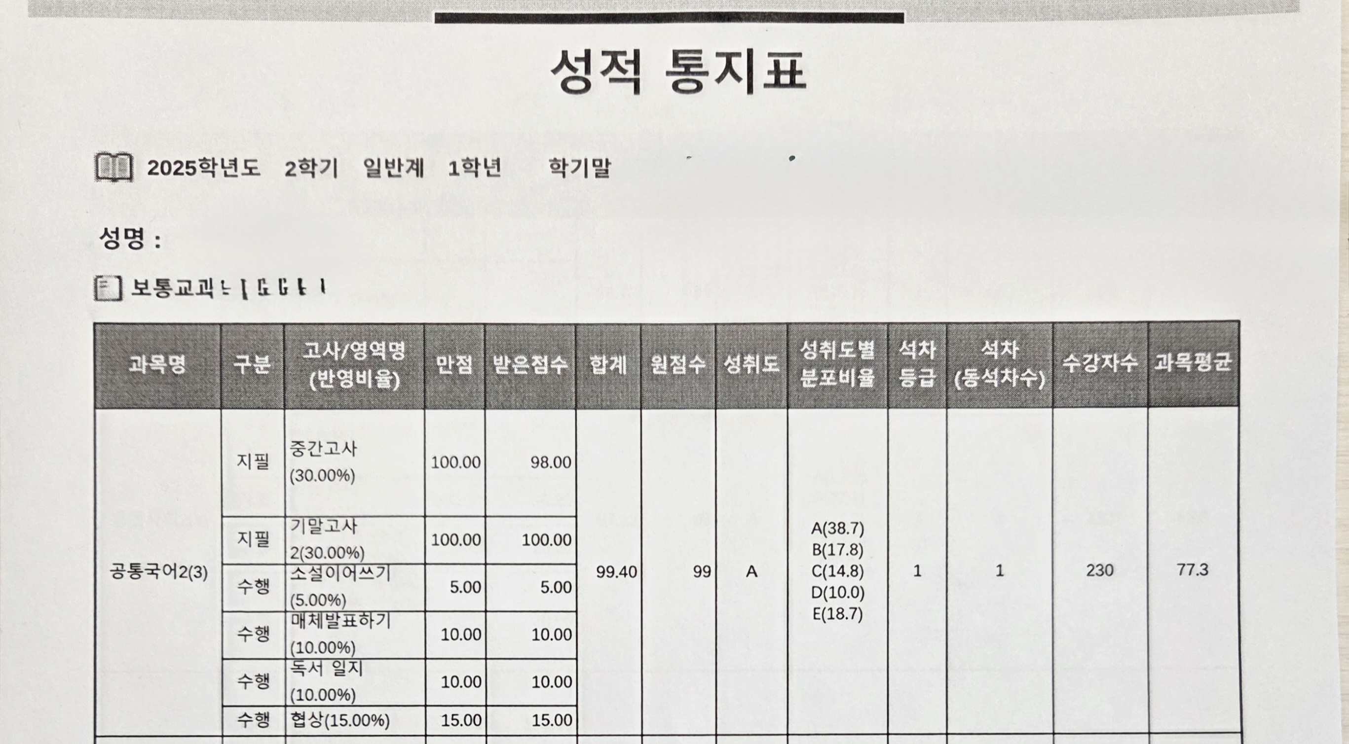 2025 Çг⵵ 1-2Çб⠼ºÀû ¿ì¼ö 1Çгâ <°øÅë±¹¾î> ¼ºÀû ¿ì¼öÀÚ - ÇÕ»ê Àü±³ 1µî, Àü±³ 2µî ¸ðµÎ ¹èÃâ